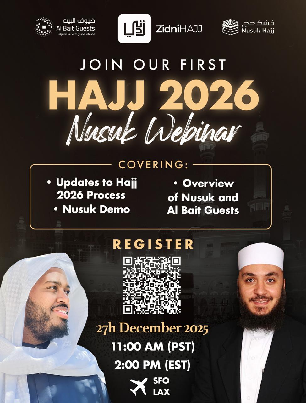 Prospective pilgrims will have to book a package supplied by one of the authorized companies via an online portal (Nusuk). Therefore, packages will not be sold by Zidni or any USA company directly nor will payments be collected by them.
