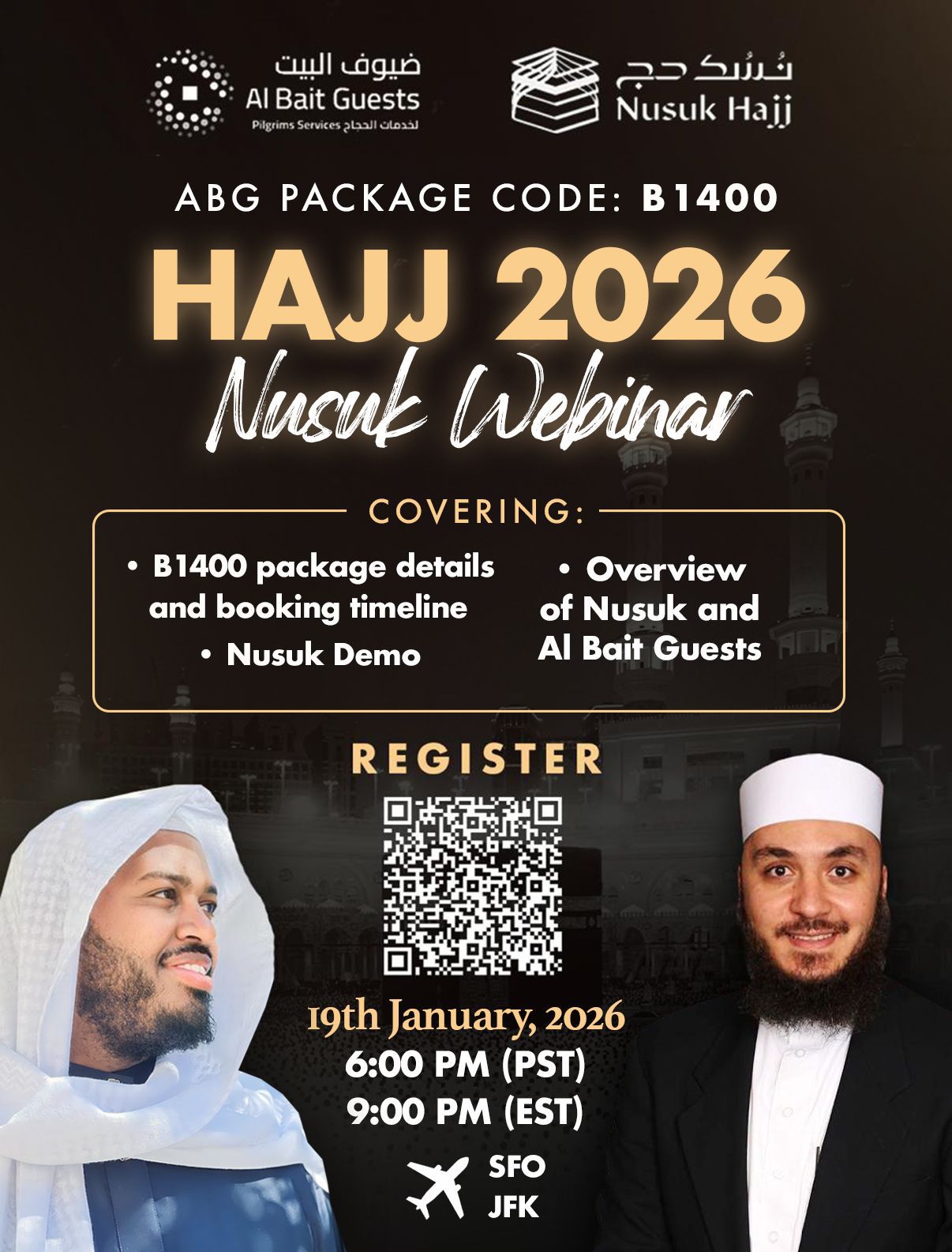 Please join the weekly ABG webinars (Sundays 5PM PST (8PM Eastern). You may also join our dedicated WhatsApp group for Package B1400 which is lead by Zidni guides for American Hujjaj.